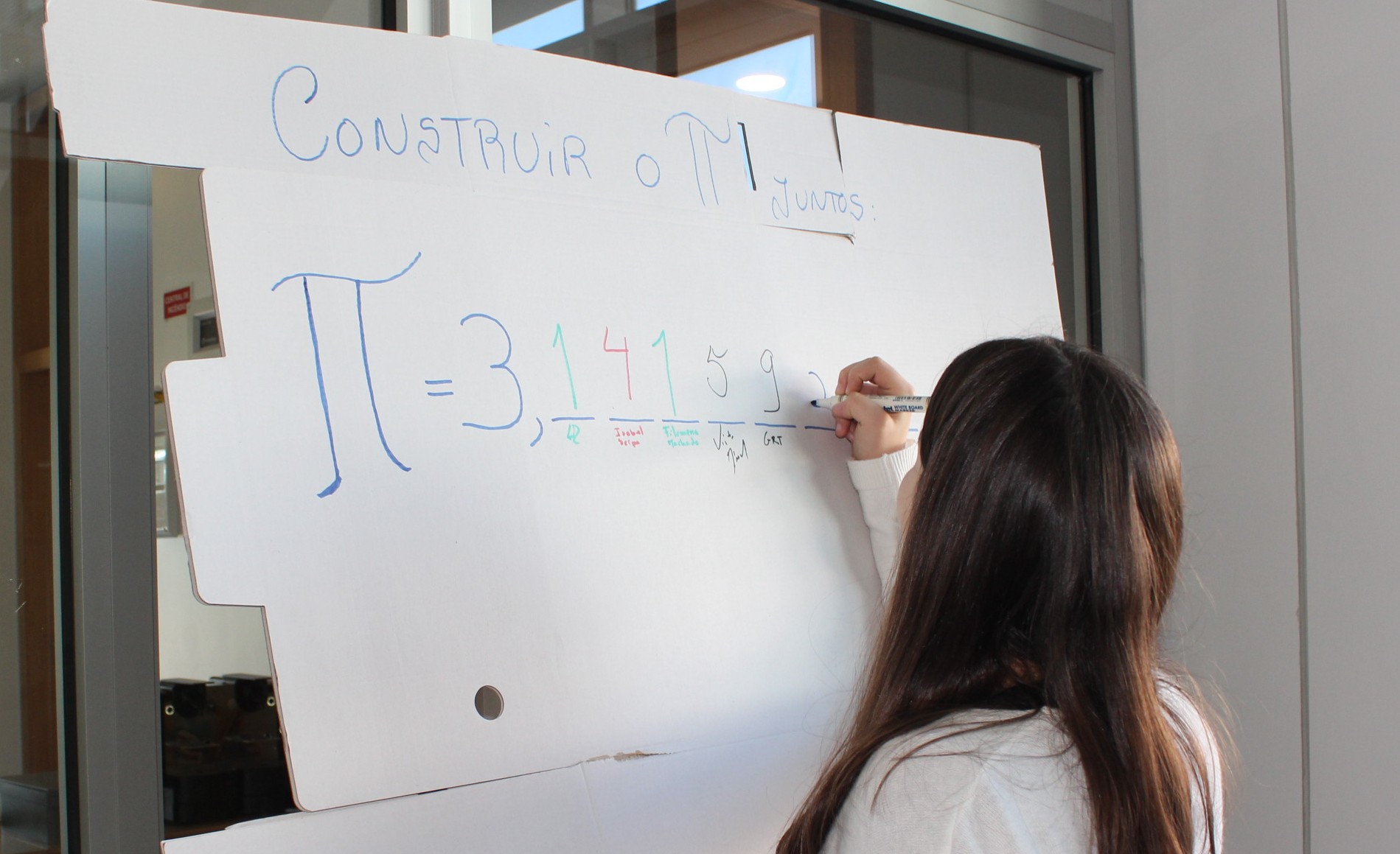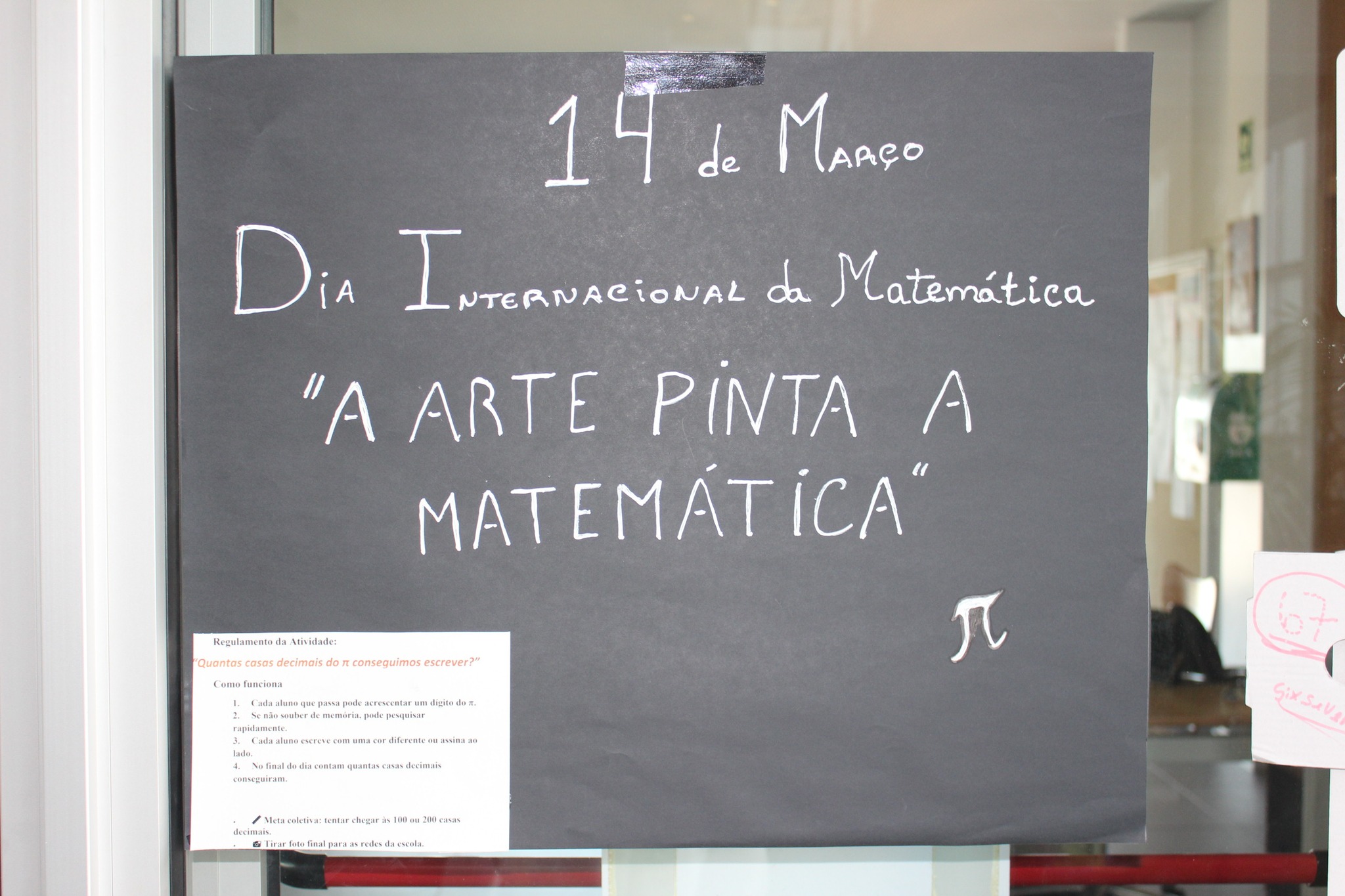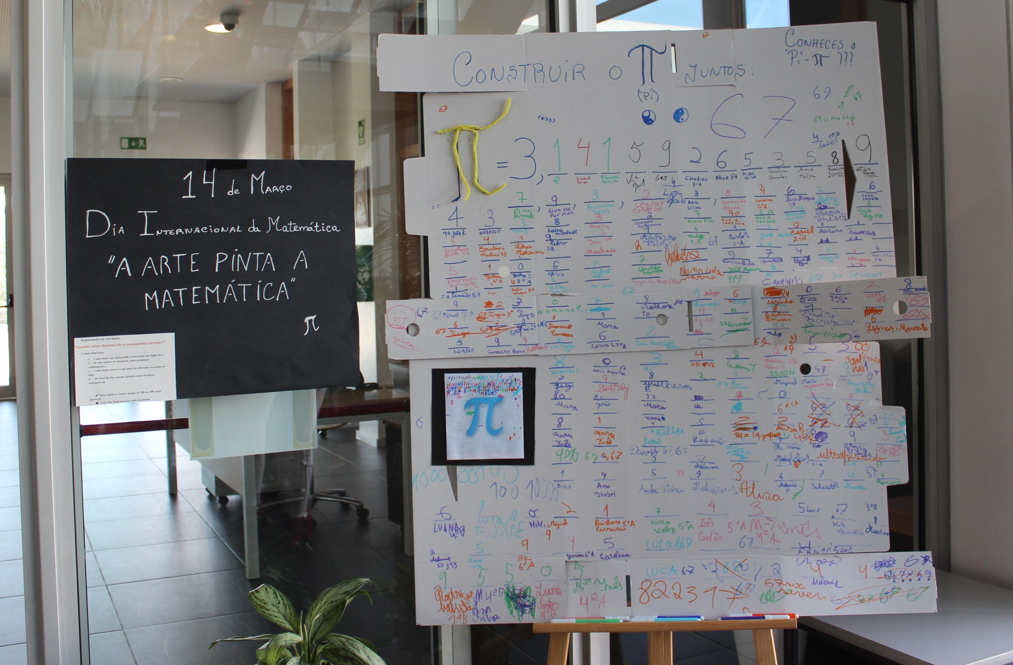 Onde cada aluno que passasse podia acrescentar um dígito do π.