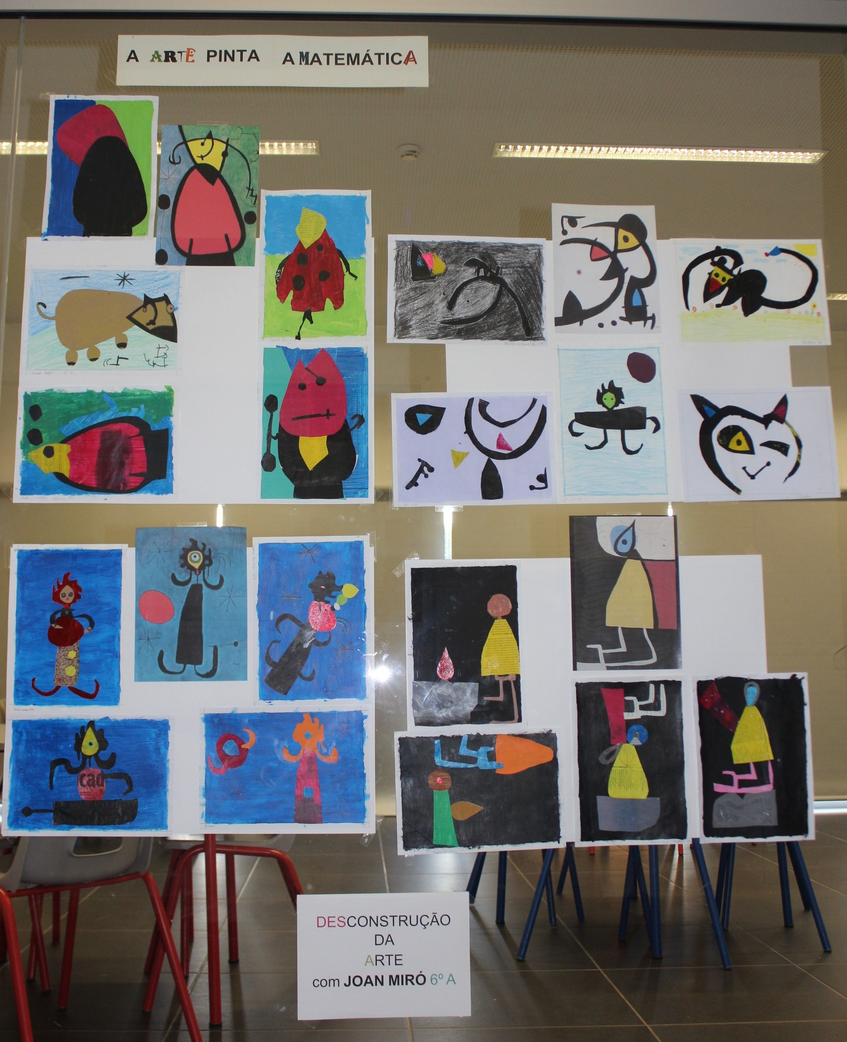 Os alunos do 6.º ano inspiraram-se em quatro obras de Joan Miró, desenvolvendo um trabalho de desconstrução da arte. Utilizando os mesmos elementos visuais, criaram composições próprias, dando asas à imaginação e explorando novas formas de