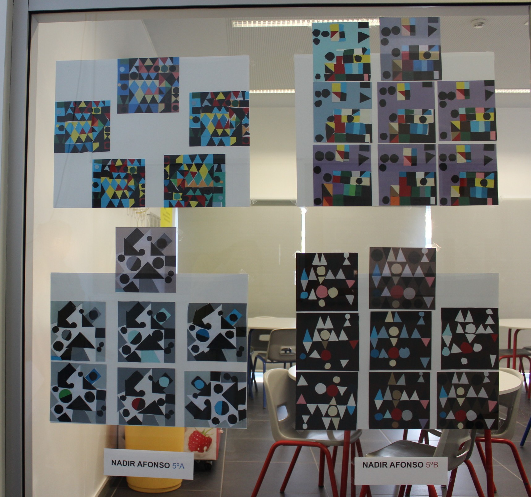 No âmbito desta atividade, os alunos do 5.º ano exploraram quatro obras do artista Nadir Afonso, duas no 5ºA e outras duas no 5ºB, trabalhando as suas pinturas marcadas pela presença de formas geométricas. A partir dessa inspiração, os alunos realizaram