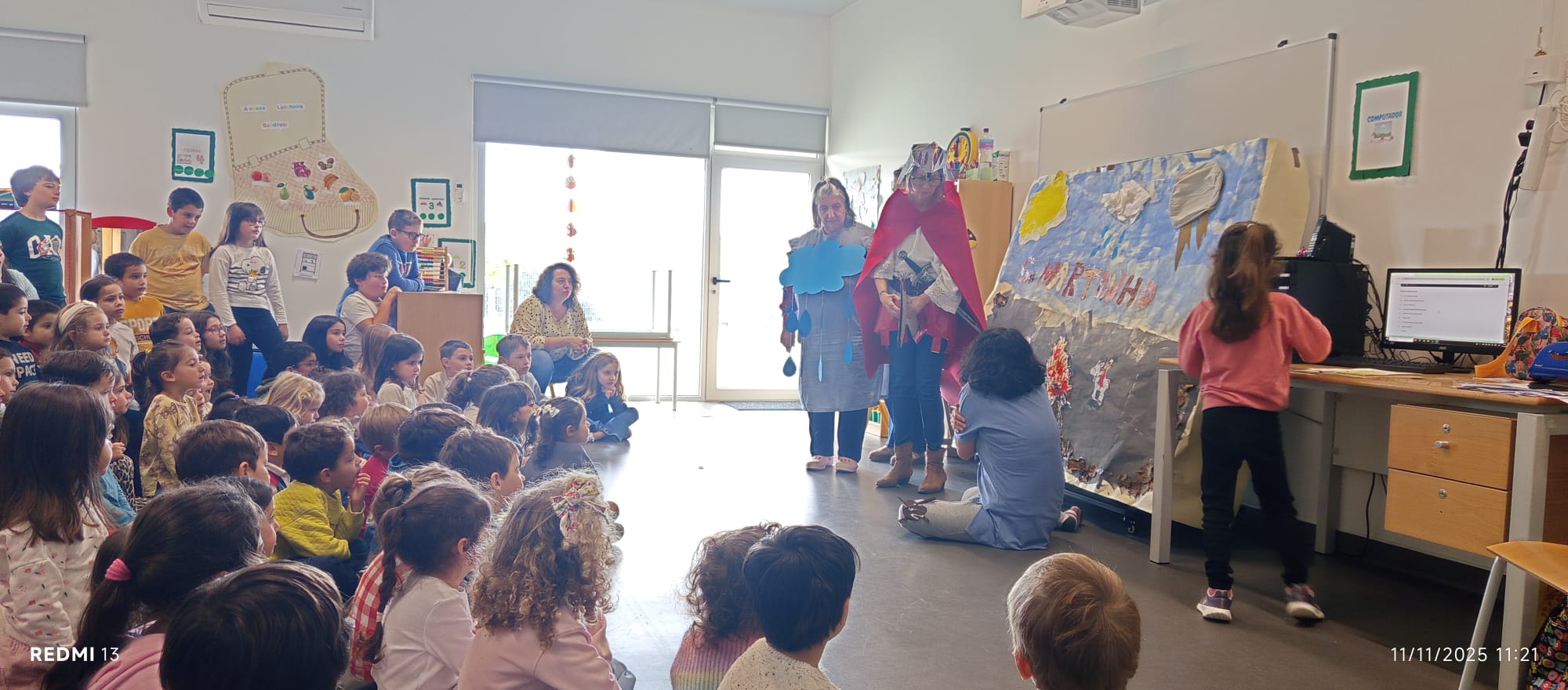 No dia 11 de novembro comemorou-se o dia de S. Martinho com castanhas assadas na hora do intervalo e com uma peça de teatro dinamizada pelas educadoras do Agrupamento para os alunos do Pré-escolar. Os alunos adoraram!