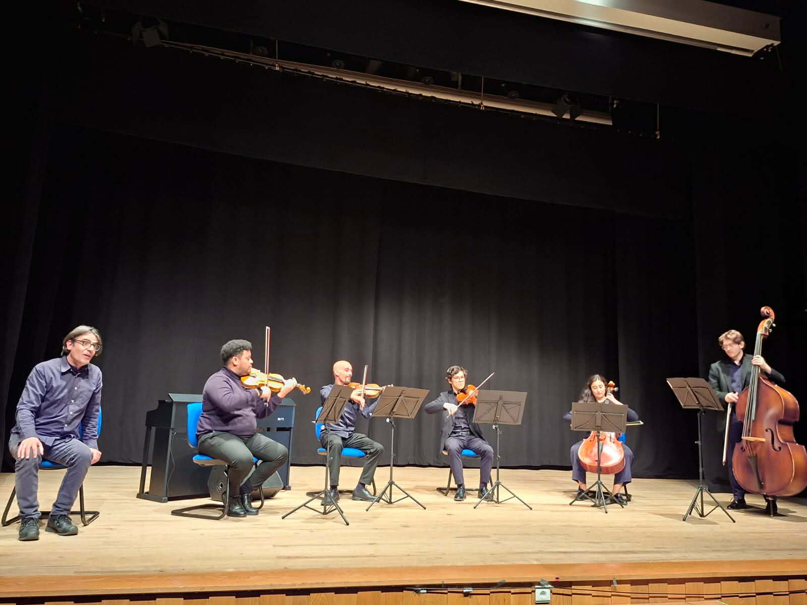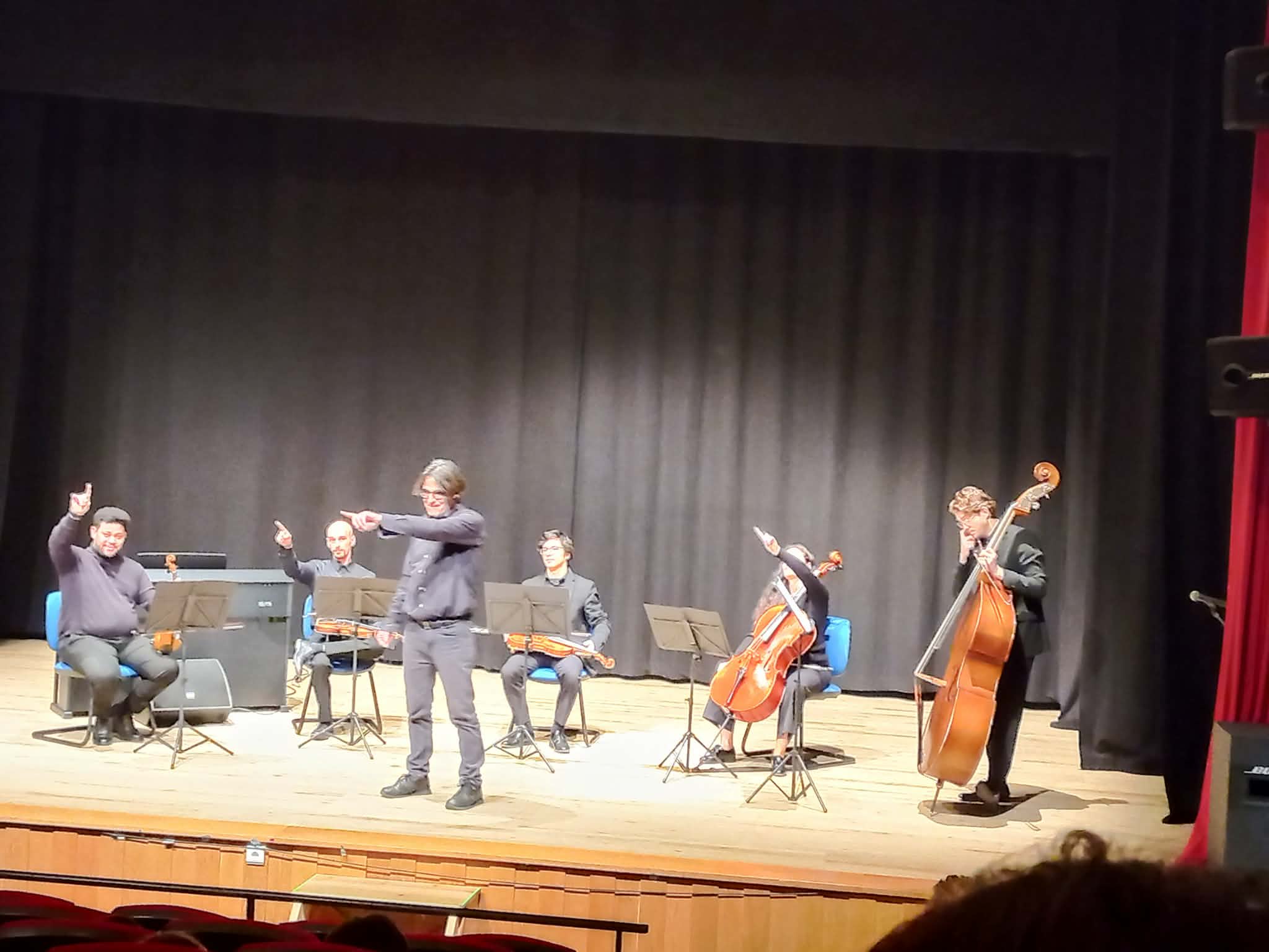 O Quinteto de Cordas da Orquestra Sinfónica de Lisboa realizou, no dia 11 de março durante a tarde, um concerto pedagógico para os alunos de 1⁰ e 2⁰ ciclos do nosso agrupamento. Ficámos a conhecer melhor os instrumentos de cordas, as técnicas que utilizam e ainda assistimos a um concerto que nos encantou. No mesmo dia à noite, o Quinteto realizou um concerto aberto a toda a comunidade onde foram interpretados temas dos Queen, homenageando-se o grande músico que foi Freddie Mercury.