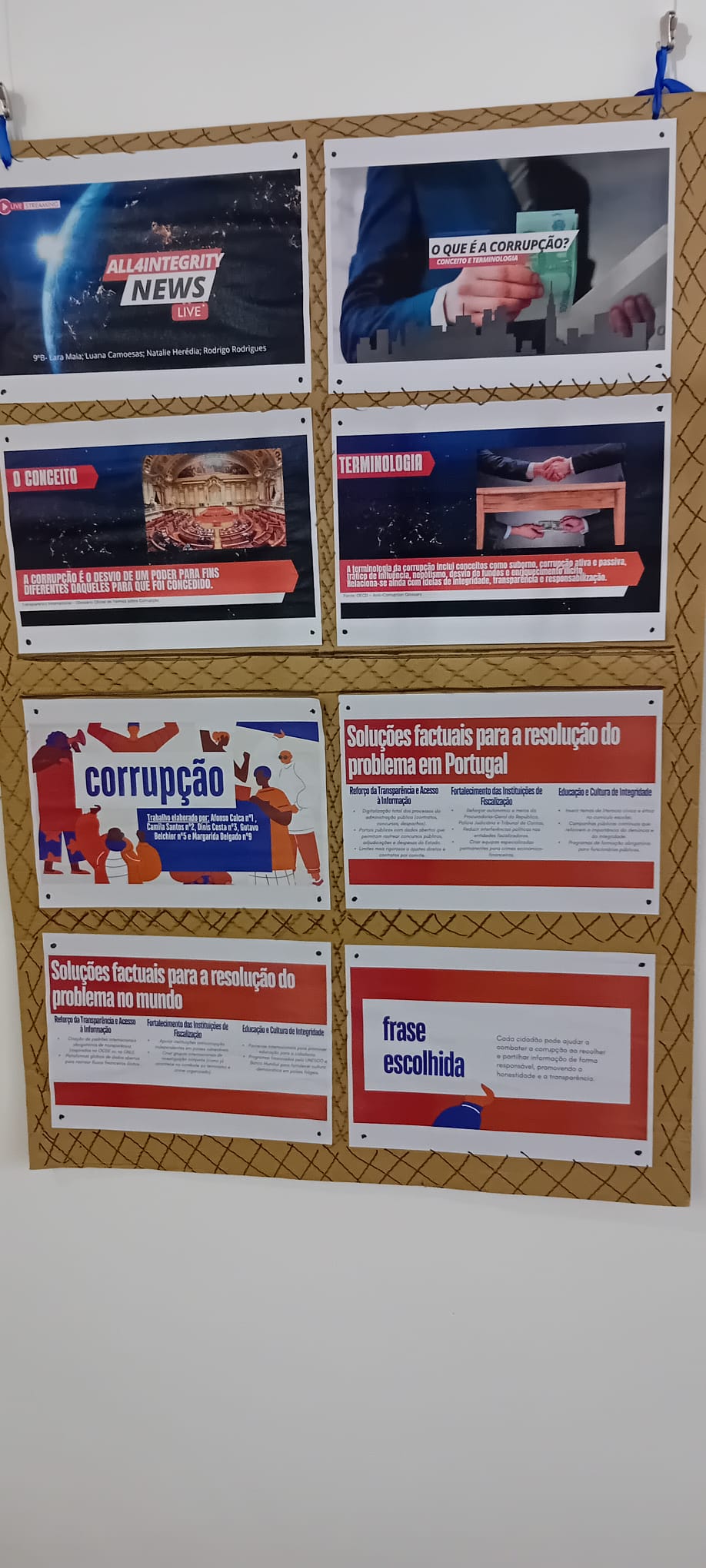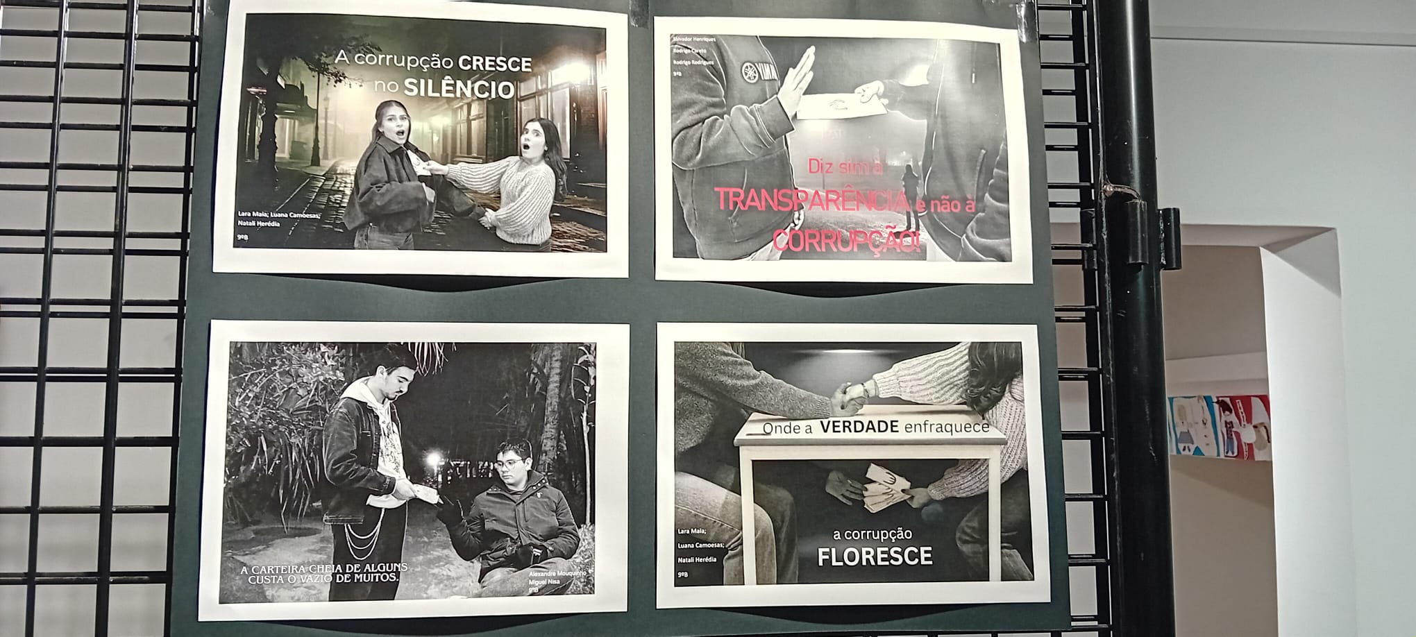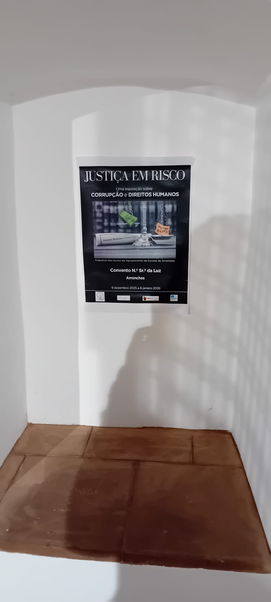 Decorreu de 9 de dezembro a 6 de janeiro, no Convento N.ª Sr.ª da Luz, a exposição “Justiça em Risco: uma exposição sobre Corrupção e Direitos Humanos”. Esta exposição contou com trabalhos realizados pelos alunos de 9º ano no âmbito do programa nacional RedEscolas AntiCorrupção, para assinalar o Dia Internacional do Combate à Corrupção. Contou, também, com trabalhos realizados por todos os alunos do Agrupamento em comemoração do Dia Internacional dos Direitos Humanos.