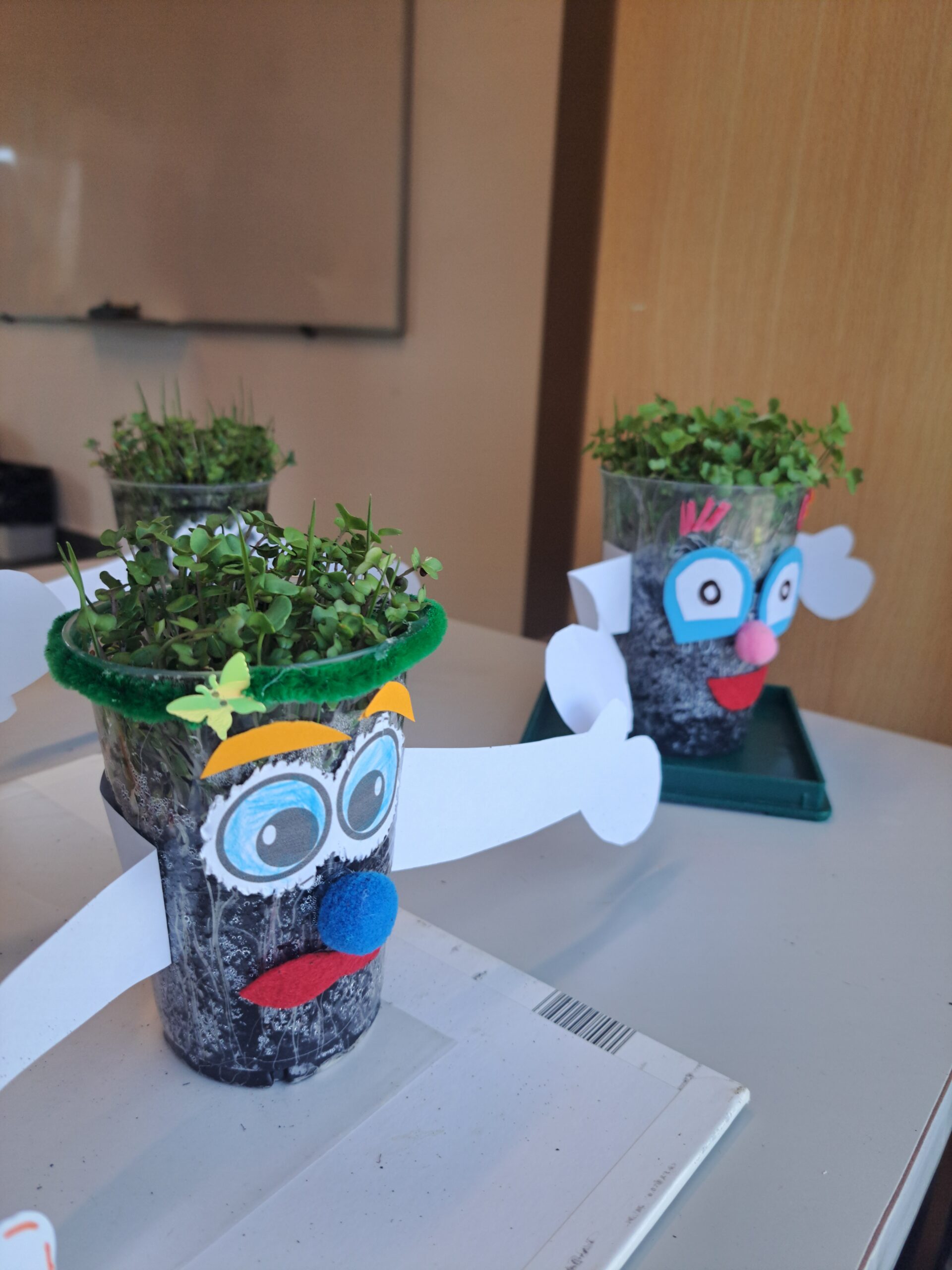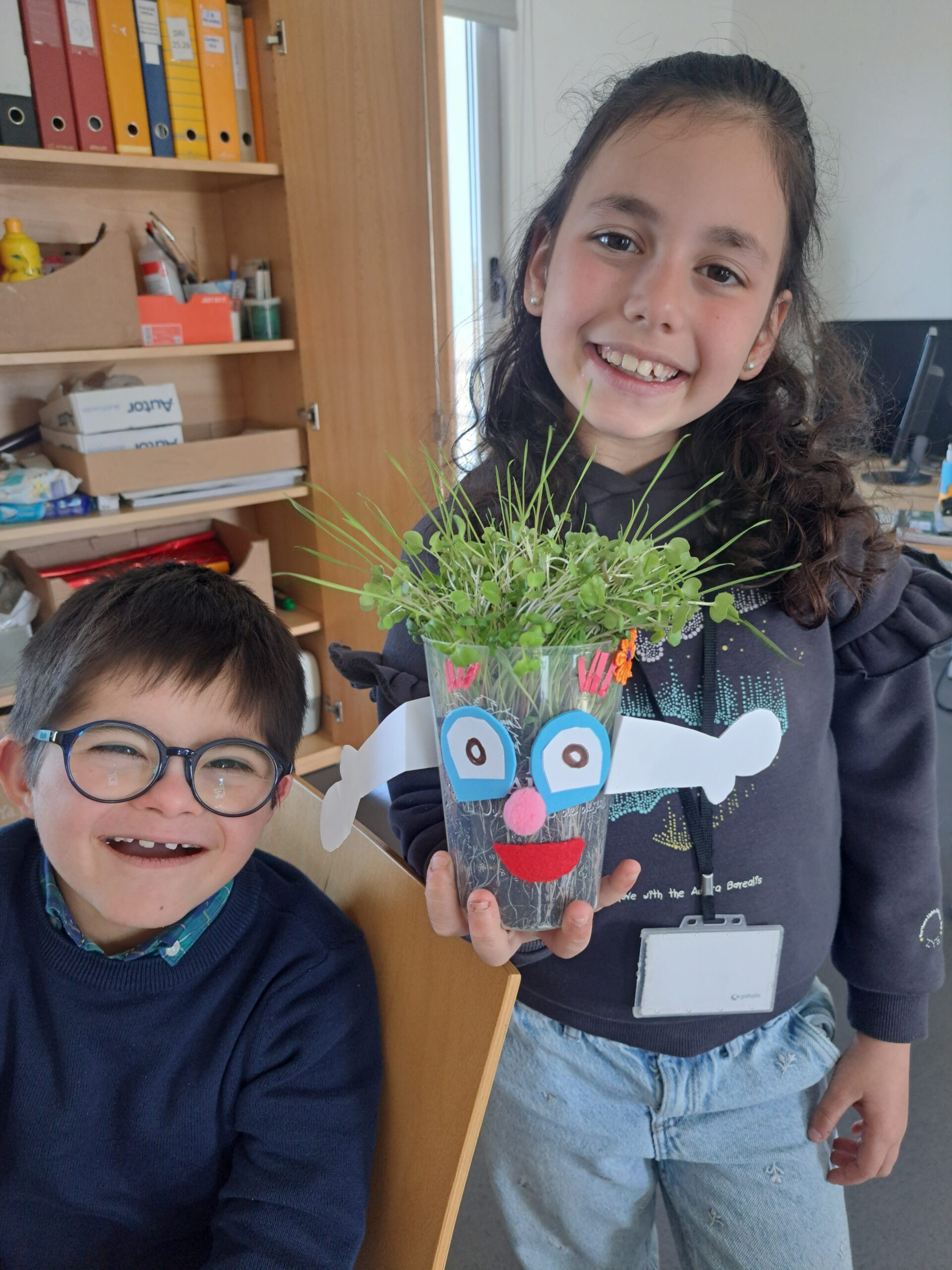De seguida, construíram o seu próprio Relvinhas e semearam-lhe sementinhas de relva e alpista, para que lhe cresça um novo cabelo. Os Relvinhas foram muito bem cuidados pelos meninos…E que lindas cabeleiras nasceram!