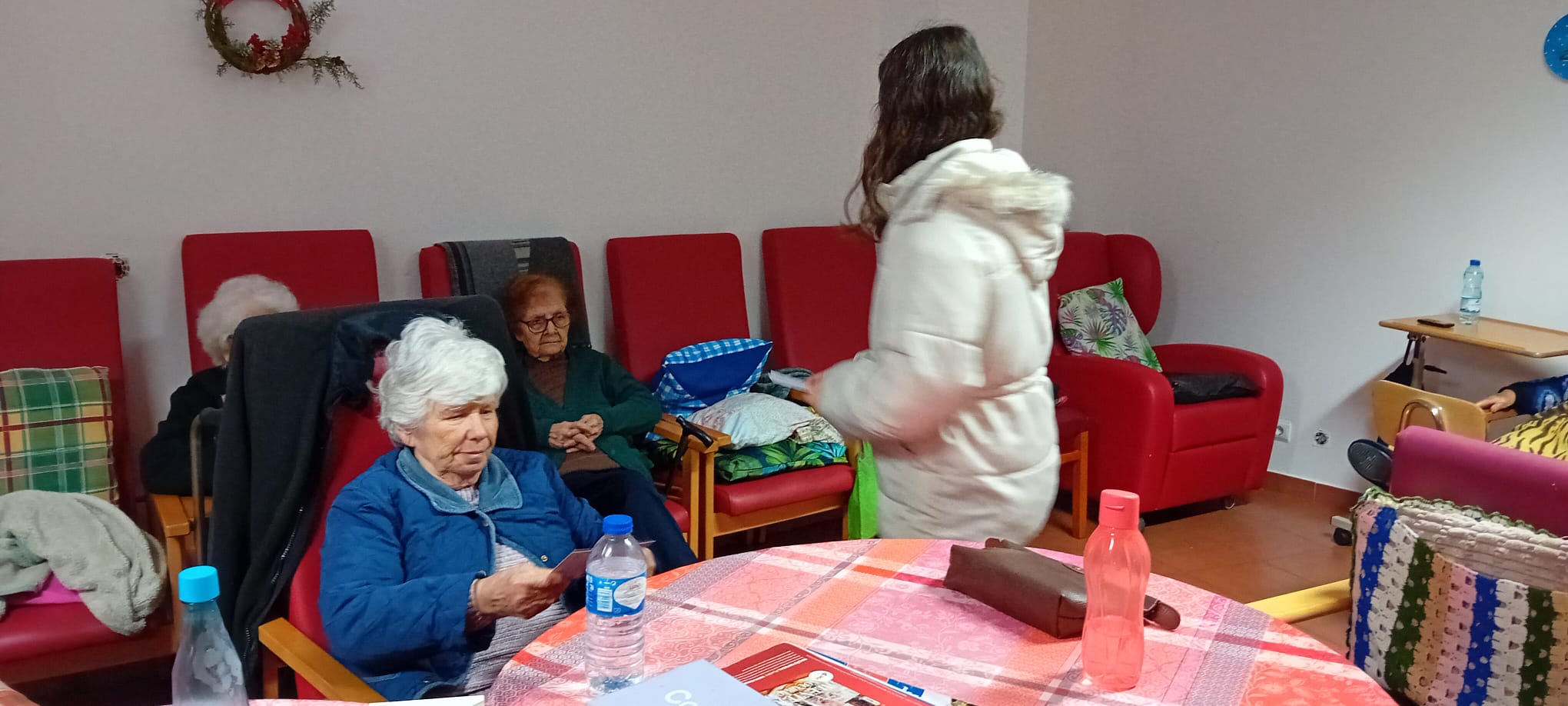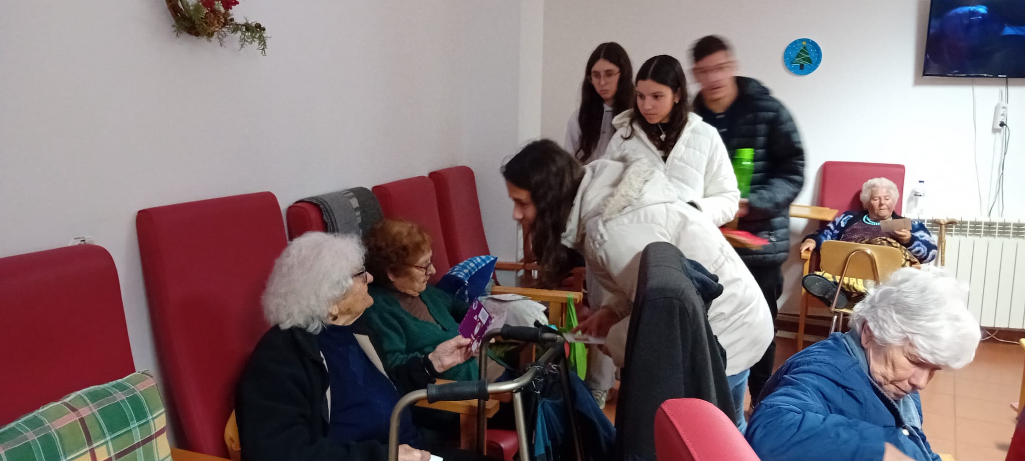 No âmbito do projeto “Um Gesto… um Sorriso!: para com os mais velhos”, inserido no programa “Crescer com Empatia da Equipa Técnica Especializada – Rosa dos Ventos e dinamizado em articulação com a coordenadora da Estratégia de Educação para a Cidadania na Escola, as Diretoras de Turma do 8ºA e 8ºB e a docente de TIC, alguns alunos foram hoje, 16 de dezembro, entregar postais de Natal aos utentes da Estrutura Residencial para Pessoas Idosas do Centro Social de Bem-Estar de Arronches.